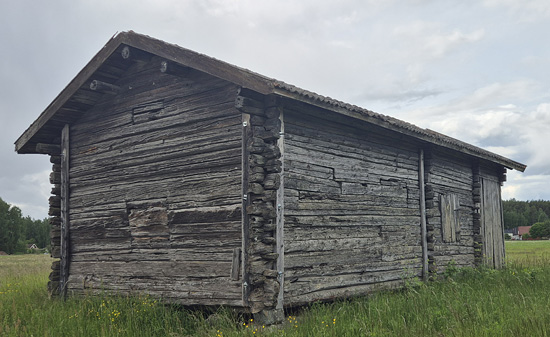 På gården bredvid fanns det en liten besättning med 3–4 kor och en trogen arbetshäst. Höet lagrades här i ladan, som var en viktig del av vardagen. Marken sträckte sig över 8 tunnland, och mot slutet av 1800-talet förändrades landskapet genom laga skiftet. Här får du vägbeskrivning till ena punkten: Google visar vägen hit Trösklada i Sunnansjö, Grangärde sn Dendrokronologisk undersökning av Torbjörn Axelson, mars 2015 Den 13 mars 2015 tog jag med tillväxtborr 4 prover i en tröskloge i Sunnansjö Lågnäsvägen/Morhagsvägen, Grangärde sn, 60° 13′ 11″ N, 14° 58' 50" E (WGS84). Trösklogen ska ha flyttats till nuvarande plats omkring sekelskiftet 1900. Det är uppenbart att den flyttats flera gånger och att en stor del av timret är sekundärt, och ofta återanvänt. Jag valde därför att ta prover i avbalkningen/mellanväggen, i ett parti, som såg ut att vara enhetligt och ursprungligt (E5b-E8b, alltså stockarna i mellanväggen knutade mot vägg C). Stockarna som är av tall är frodvuxna, och proven innehåller endast 49-58 ringar vardera. Tre av proven passar utan problem mot varandra, och dessa låter sig dateras med sista ring till 1695 (vinterfällt). Prov Grtrfj2 har en tillväxtkollaps, som gör att det är svårdaterat, men området före denna (39 ringar) passar bra mot de andra proven om man antar att de är samtida med dessa, och tillväxtkollapsen inträffar i så fall 1687, vilket är ett år som ofta uppvisar tillväxtkollaps i området. Det finns därför knappast några skäl att anta att inte också den stocken är samtida med de andra, särskilt då den dessutom har ett med dem likartat utseende. Man bör därför kunna anta att ladan ursprungligen byggdes ca 1696, men att den timrats om vid ett flertal tillfällen. De undersökta stockarna är bilade och försedda med raka hak. |