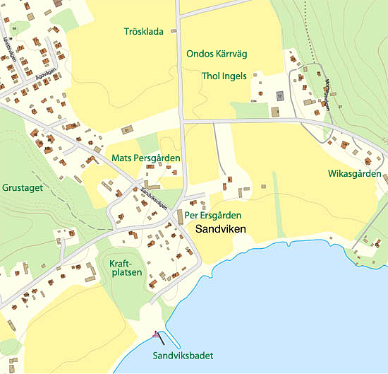Byn ligger invid en nordlig vik av Väsman benämnd Sandviken och som även gett upphov till bynamnet. Det rör sig här om ett låglänt åkerlandskap som i öster begränsas av Bullerberget och i norr av Grytänge och Sunnansjö By. I väster gränsar Sandviken mot Lågnäset. Landskapet har karaktären av en sanddyn som skiljer Väsman från Bysjön. Länkar i sammanhanget: 🔹om Sandviken 🔹Sandvikens anor från 1560-talet 🔹Sandviksbadet 🔹Grustaget i Sandviken 🔹Sandsugen var den första i sitt slag 🔹Ondos Kärrväg 🔹Thol Ingels 🔹Wikasgården 🔹Mats Persgården 🔹Per Ersgården 🔹Trösklada i Sunnansjö 🔹Kraftplatsen Sunnansjö Ta del av en PDF-fil med mer information om Sandvikensområdet 🔹Gårdar och Släkt i bygden Byn ingår i Sunnansjöområdet, som i stort sett omfattar hela trakten mellan Väsman och Bysjön. Bebyggelsen inom nämnda område torde tillhöra några av de äldsta inom Grangärde socken näst efter Grytänge, som enligt traditionen utpekas som den plats där de äldsta bosättningarna inom socken uppkom. De första nybyggarna i Sandviken kom sannolikt från Grytänge, kanske redan under 1200-talet när jordbruket blev en allt viktigare näringsgren efter att jakt och fiske tidigare varit dominerande. Marken i Sandviken var lämplig för uppodling och bör redan tidigt ha lockat bönderna i Grytänge där marken var mer stenbunden. Här får du vägbeskrivning: Google visar vägen hit Källa: Sandviken, En by i Grangärde, av Kjell Vadfors. Sammanställt av Jerry Olsson och Anita J Larsson. |