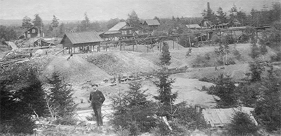 Det som syns på denna bild är gruvområdet här i Burängsberg. Mitt i bilden står gruvfogde Ludvig Broman. Han tjänstgjorde här som skött- och gruvfogde fram till 1907 då driften i Burängsberg nedlades. En utav stugorna uppe på höjden står fortfarande kvar. Den tjänstgjorde som arbetarkasern och kallades i folkmun för "gruvstugan". 1955 användes den till kontor när det gjordes provbrytningar här i området. Burängsbergsgruvan – Historisk översikt Burängsbergsgruvan har varit aktiv sedan början av 1600-talet. I slutet av samma århundrade transporterades malm till Norså, Norhyttan, Västansjö och Abick (nuvarande Nyhammar). Här får du vägbeskrivning: Google visar vägen hit Gruvdriftens utveckling Stora Kopparbergs Bergslag blev en viktig aktör i området efter att Lövsjö bruk erhöll sina privilegier. År 1807 tilldelades "De förenade utmålens gruvor" sex separata utmål, vilka 1839 slogs samman till ett enda. Teknisk utveckling 1866 installerades en ångmaskin från Bolinders med två spel, eldades med ved från gruvskogen. Efter ett vilostånd återupptogs driften av Bergslaget år 1873. 1901 byggdes en linbana till Norhytte masugn, och vidare till sjön Väsman av AB Ludvika Bruksegare. 1902 rapporterades att maskineriet var överansträngt på grund av det stora gruvdjupet. 1903–1904 installerades en torvgasmotor från Gebrueder Körtning på 60 hästkrafter, som drev tre gruvspel och en pump. 1907 lades driften ned då konststänger och vinkelbrott ofta gick sönder. Mellan 1858–1907 hade totalt 247 700 ton malm brutits. Undersökningar och senare drift 1919 gjordes en elektrisk undersökning, men ingen malm påträffades. 1928 sönades gruvan. 1955 utfördes nya magnetiska detaljmätningar. 1961 ledde mätningarna till en ny schaktsänkning. År 1964 nådde man ett djup av 327 meter, men malmtillgången var begränsad. 1966 lades driften ned igen. Återvinning och ägarbyten 1974–1976 togs gammal varp tillvara, totalt 66 400 ton. 1978 såldes gruvorna till AB Doman. 1979 övertogs de av SSAB. 1982 av NSG. 1987 sönades utmålen slutligen. Ordförklaringar Utmål: Ett arbetsområde inom gruvdrift, max 16 hektar. Sönad: Förverkad rätt till gruvområdet om innehavaren inte betalar årlig avgift till staten och jordägaren. Marken återgår till jordägaren och kan inmutas på nytt. Fakta: Norhyttans byalag, Sammanställt av: Karin Graaf |