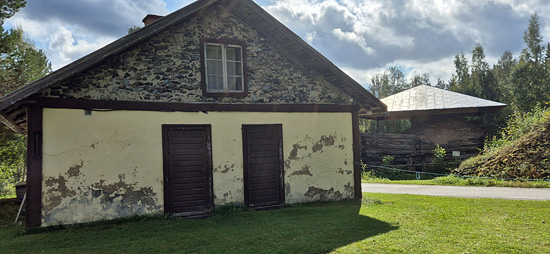 Hyttan låg på den södra sidan av vägen, medan hyttkontoret är beläget cirka 50 meter bort på den norra sidan. Byggnaden har en imponerande ålder som vittnar om dess betydande roll i områdets industriella historia. |