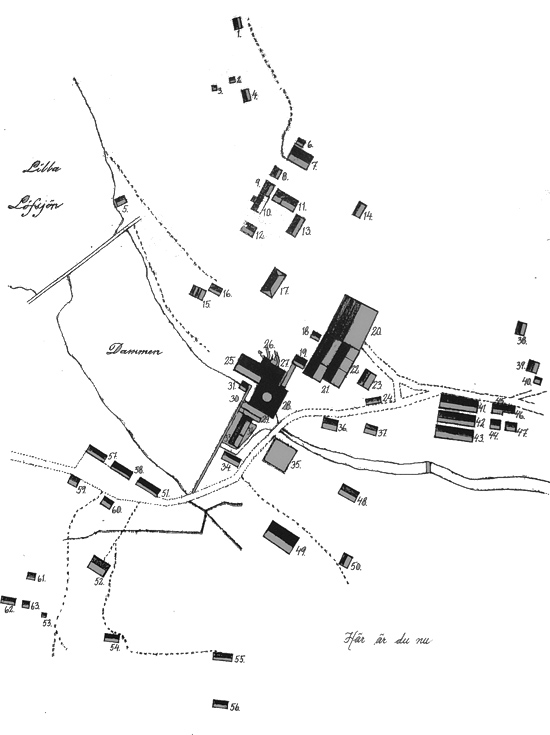| Sevärdheter >> Karta över Lövsjö Bruks område 1882 | ||